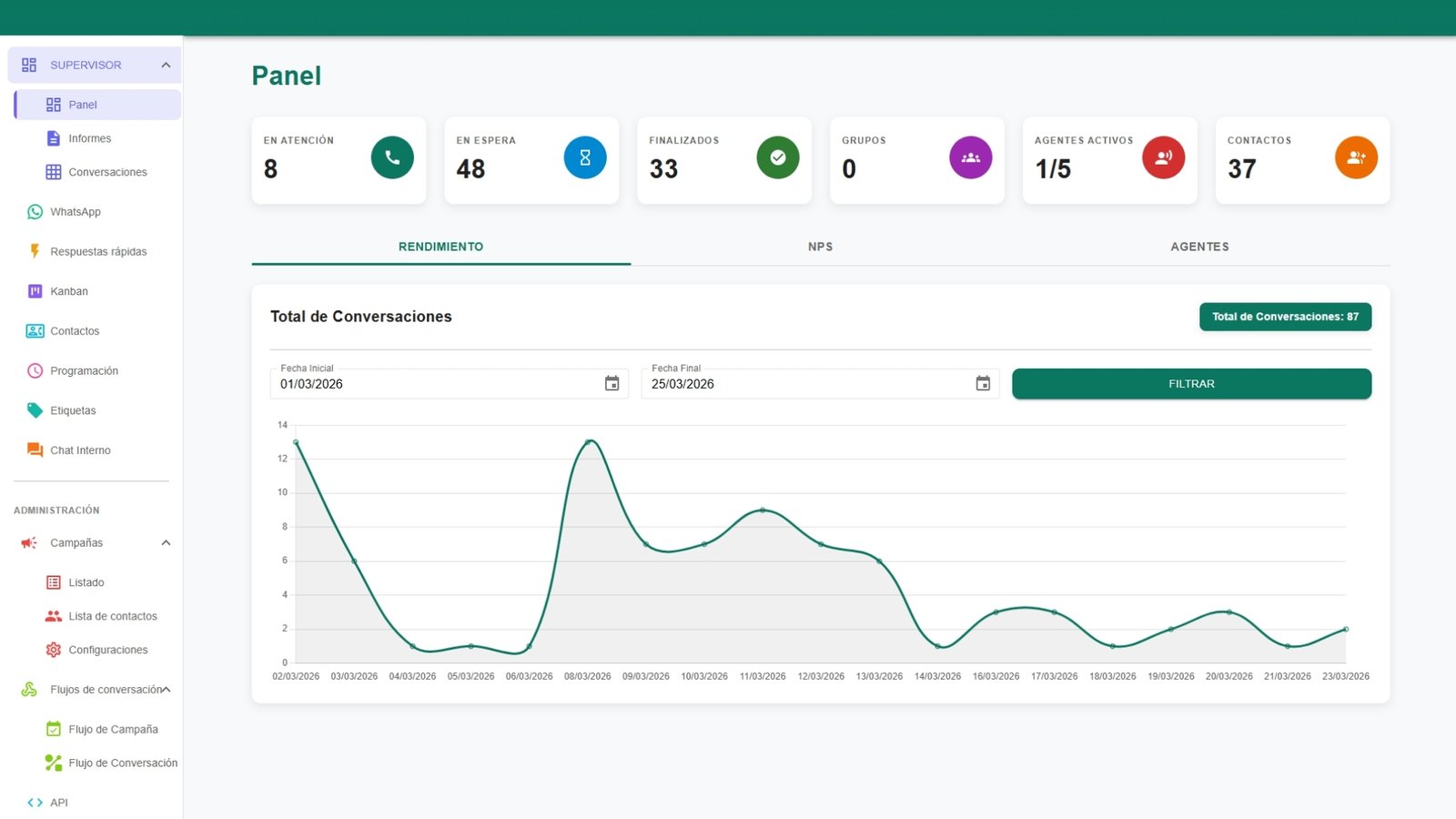 Coordina todo tu equipo y supervisa cada interacción en tiempo real en un solo sitio.